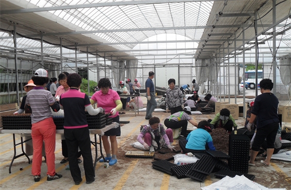 ÇÕ´öÀ¾ ºÎ³àȸ(ȸÀå ±è´ëÇü)°ú ³ó°¡ÁֺθðÀÓȸ(ȸÀå Á¤±â¿Á) 50¿©¸íÀº Áö³­ 17ÀÏ ÇÕ´ö³óÇù °øµ¿ÀÛ¾÷Àå¿¡¼­ °ü³» ³ó°¡¿¡ ¹èºÎÇÒ ¹èÃ߸ð À°¸ð»óÀÚ(Æ÷Æ®)ÀÛ¾÷À» ½Ç½ÃÇß´Ù.
