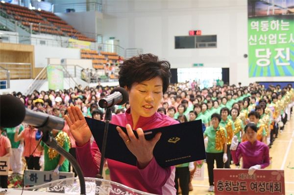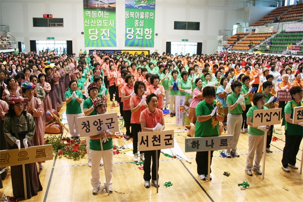 ÃæÃ»³²µµ ¿©¼ºÀÇ ÇѸ¶´ç ÃàÁ¦ÀÎ Á¦28ȸ ÃæÃ»³²µµ ¿©¼º´ëȸ°¡ 6ÀÏ °í´ë¸é ´çÁøÁ¾ÇտÀå ½Ç³»Ã¼À°°ü¿¡¼ ¿·È´Ù.