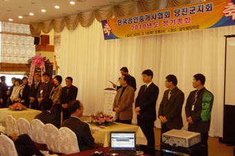 Çѱ¹°øÀÎÁß°³»ç Çùȸ ´çÁø±ºÁöȸ(ÁöȸÀå ¹é³²¼ö) 2010³â Á¤±âÃÑȸ°¡ 18ÀÏ ¼³¾Ç¿þµùȦ¿¡¼­ ´çÁø±º °øÀÎÁß°³»ç »ç¹«¼Ò 200¿© °øÀÎÁß°³»çµéÀÌ Âü¼®ÇÑ °¡¿îµ¥ ¿­·È´Ù.