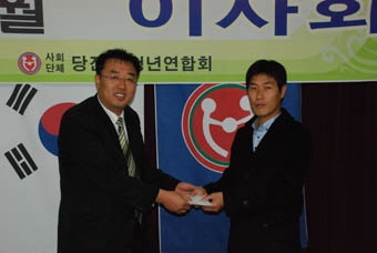 ´çÁø±º ¹ü¶ìµéÀÇ ¸ðÀÓÀÎ ´çÁø±ºÃ»³â¿¬ÇÕȸ ¹ü¿ìȸ(ȸÀå ±è±âÀç)°¡ ½Ò½ÒÇØÁø ¿¬¸»À» ¸Â¾Æ »ç¶û³ª´®¿¡ ¾ÕÀå¼ ÁÖÀ§¸¦ ÈÆÈÆÇÏ°Ô Çϰí ÀÖ´Ù.