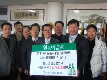 Áø·ÎÀÇ¡®µ¿¹®»ç¶û Ä·ÆäÀÎ ±â±ÝÁ¶¼º »ç¾÷¡¯Àº ´çÁø±ºÁö¿ª ÁÖ¿ä À½½ÄÁ¡¿¡¼ ÂüÀ̽½ ¼ÒÁÖ¸¦ ¸¶½Ç ¶§ ¸¶´Ù 1º´´ç 100¿ø¾¿ Àû¸³ÇÑ ±Ý¾×À» ÇØ´ç Çб³¿¡ ÀåÇбÝÀ¸·Î Àü´ÞÇÏ´Â °ÍÀÌ´Ù.