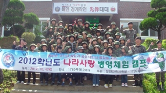 ÇлýµéÀº ÀüÅõº¹ »óÀÇ, ź¶ì, ¹æÅºÇï¸äÀ» Âø¿ëÇϰí, ´ë´ëÀå(Áß·É Á¤ÇнÂ)ÀÇ ³ª¶ó»ç¶û ¸¶À½±³À°ÀÌ ½ÃÀ۵ŠÇб³¿¡¼­µµ °­Á¶µÇ´Â ¡®¾Èº¸¡¯ÀÌÁö¸¸, ´ë´ë¿¡¼­ Á÷Á¢ ¹Þ´Â ¾Èº¸±³À°Àº ÇлýµéÀÇ Èï¹Ì¸¦ ÀھƳ»´Â ÇÁ·Î±×·¥À¸·Î ÁøÇàÀÌ µÆ´Ù.