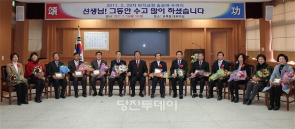 ´çÁø±³À°Áö¿øÃ»(±³À°Àå ¾çÈ¿Áø)Àº Áö³­ 15ÀÏ, ±³À°Ã» ´ëȸÀǽǿ¡¼­ 2¿ù¸»·Î ÅðÁ÷ÇÏ´Â ±³¿øÀÇ °ø´öÀ» ±â¸®´Â ¼Û°øÆÐ¸¦ ¼ö¿©Çß´Ù.