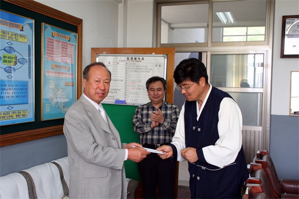 ¼Û»êÁßÇб³(±³Àå ÃÖÁ¤½Ä)¿¡ ±Ù¹«Çϰí ÀÖ´Â ÇÑ ±³»ç°¡ ½º½ÂÀÇ ³¯À» ¸Â¾Æ ÀåÇбݿ¡ ½á´Þ¶ó¸ç Çб³¿¡ 100¸¸¿øÀ» ³»³õ¾Æ ÀÜÀÜÇÑ °¨µ¿À» ÁÖ°í ÀÖ´Ù.