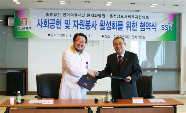 Ãæ³²µµ »çȸº¹ÁöÇùÀÇȸ(ȸÀå ±è¼öÁø)¿Í ÀÇ·á¹ýÀÎ ÇѾÆÀÇ·áÀç´Ü ¹®Ä¡°úº´¿ø(¿øÀå ¹®Àº¼ö)Àº Áö³ 19ÀÏ »çȸ°øÇå ¹× ÀÚ¿øºÀ»ç Ȱ¼ºÈ¸¦ À§ÇÑ Çù¾àÀ» ü°áÇß´Ù.