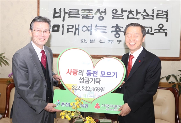 Ãæ³²±³À°Ã»(±³À°°¨ ±èÁ¾¼º)Àº 16ÀÏ ¿ÀÀü ±³À°°¨ Á¢°ß½Ç¿¡¼ ±×µ¿¾È Àú¼ÒµæÃþ°¡Á¤ Çлý µ½±â ÀÏȯÀ¸·Î ÃßÁøÇÑ ¡®2012 »ç¶û³ª´® µ¿Àü¸ðÀ¸±â¡¯ ¼º±Ý 3¾ï2,224¸¸¿øÀ» ÃæÃ»³²µµ»çȸº¹Áö°øµ¿¸ð±Ýȸ(ȸÀå ½ÅÇÑö)¿¡ ±âŹÇß´Ù.