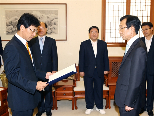 ±ÇÈñÅÂ Ãæ³²µµ Á¤¹«ºÎÁö»ç°¡ 16ÀÏ µµÃ» ´ëȸÀǽǿ¡¼ ÃëÀÓ½ÄÀ» °®°í °ø½Ä ¾÷¹«¸¦ ½ÃÀÛÇß´Ù.