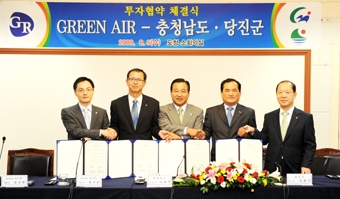 Ãæ³²µµ´Â 5ÀÏ ¼ÒȸÀǽǿ¡¼ À̿ϱ¸ Ãæ³²µµÁö»ç, ¹ÎÁ¾±â ´çÁø±º¼ö, ±×¸°¿¡¾î(ÁÖ) °æ±Ô´ã¡¤±è½ÅÇÑ ´ëÇ¥, ´ë¼º»ê¾÷°¡½º(ÁÖ) ±èÇüÅ ´ëÇ¥ÀÌ»ç »çÀåÀÌ Âü¼®ÇÑ °¡¿îµ¥ Green Air»çÀÇ Ãæ³² ´çÁø ÅõÀÚ¿¡ °üÇÑ ÅõÀÚÇù¾à(MOU)À» ü°áÇß´Ù.