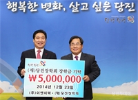 ´ëÈ£Áö¸é ¼ÒÀç ½Å¼®°³¹ß(ÁÖ) ÀÌ¿µ¹Î ´ëÇ¥°¡ 15ÀÏ ½ÃûÀ» ¹æ¹®ÇØ ´çÁøÀåÇÐȸ¿¡ ´çÁøÀÇ ¹Ì·¡¸¦ À̲ø¾î °¥ ÀÎÀç ¾ç¼ºÀ» À§ÇÑ ÀåÇÐ±Ý 1000¸¸¿øÀ» ±âŹÇß´Ù.ÀÌ¿µ...