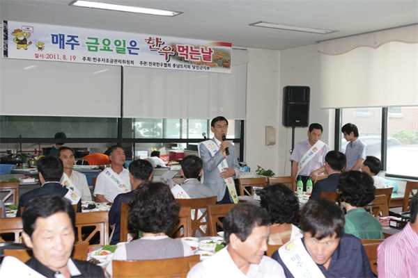 ÇÑ¿ìÀÚÁ¶±Ý°ü¸®À§¿øÈ¸¿¡¼ ÁÖÃÖÇϰí Àü±¹ÇÑ¿ìÇùȸ´çÁø±ºÁöºÎ(ÁöºÎÀå À¯º´À±)°¡ ÁÖ°ü, ±ºÀÌ ÈÄ¿øÇÑ À̳¯ Çà»ç¿¡´Â ³ó¢«ÃàÇù °ü°èÀÚ, ÇÑ¿ìÇùȸȸ¿ø µî 100¿© ¸íÀÌ Âü¼®Çß´Ù