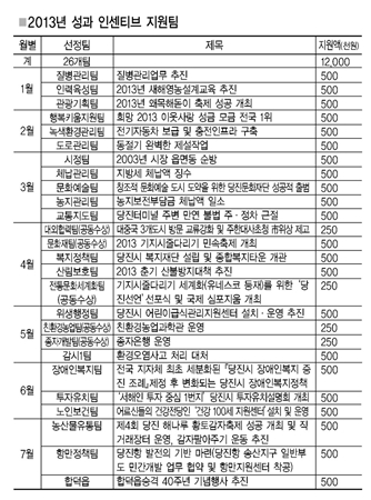 ½Ãû ±âȹ¿¹»ê´ã´ç°ü½Ç¿¡¼ ÀÔ¼öÇÑ ÀÚ·á <¼º°ú Àμ¾Æ¼ºê Áö¿ø°èȹ>¿¡ µû¸£¸é 8¿ù ÇöÀç 7¿ù¸»±îÁö 26°³ ÆÀ¿¡ ¼º°ú Àμ¾Æ¼ºê(°¢ 50¸¸¿ø¾¿) ¸ðµÎ 1300¸¸¿øÀ» Áö¿øÇß´Ù´Â °Í.