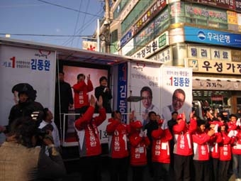 Áö³­ 3ÀÏ ¿ÀÈÄ ´çÁø¿¡ ±èµ¿¿Ï È常¦ ÃѼ± Áö¿øÂ÷ ¹æ¹®ÇÑ »õ´©¸®´ç ¹Ú±ÙÇý ºñ»ó´ëÃ¥À§¿øÀåÀÌ ¿À¸¥¼Õ¿£ ºØ´ë¸¦ °¨°í ¿¬´Ü¿¡ ¿Ã¶ó ±èµ¿¿Ï È常¦ ¼±ÅÃÇØ ´Þ¶ó¸ç ÇÑ ¸»ÀÌ´Ù.