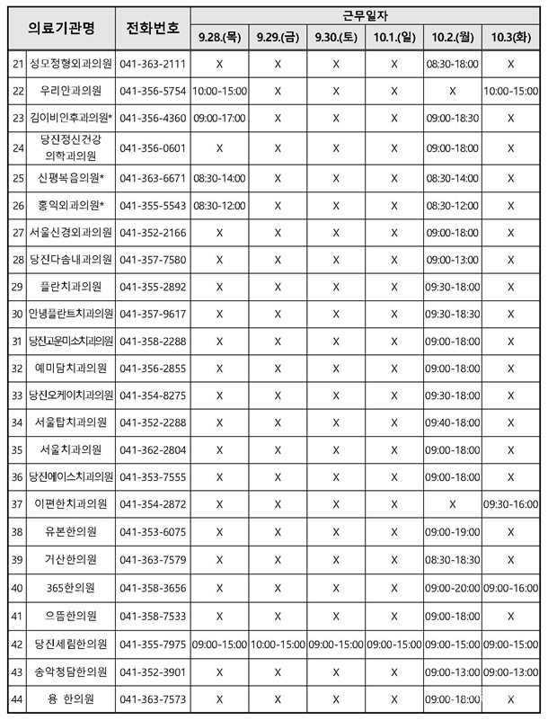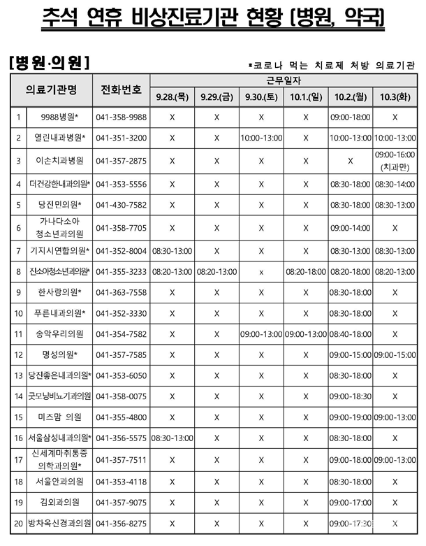 ¶ÇÇÑ, ¿¬ÈÞ ±â°£ Áß 4ÀÏ(9.28.~10.1.)°£ ¿ÀÀü 9½ÃºÎÅÍ ¿ÀÈÄ 6½Ã±îÁö Áø·á½ÇÀ» ¿î¿µÇÑ´Ù.