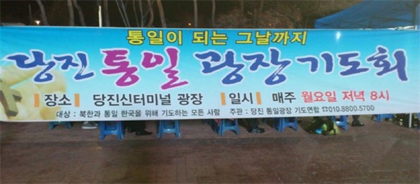 ÅëÀϱ¤Àå ±¸±¹±âµµÈ¸°¡ 22ÀÏ ¿ÀÈÄ 8½Ã ´çÁøÅ͹̳Π¾Õ ±¤Àå¿¡¼­ 30¿©¸í ±âµ¶±³ÀεéÀÌ ¸ðÀÎ °¡¿îµ¥ °³ÃֵŠ±âµµÈ¸´Â 1ºÎ Âù¾ç°ú ±âµµ, 2ºÎ ´çÁø ¿Â´©¸®±³È¸ °í¿µ¼® Àå·ÎÀÇ ÅëÀÏ Æ¯°­ÀÌ ÀÖ¾ú´Ù.
