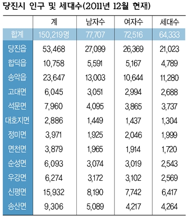 20´ë°¡ Á¦ÀÏ ¸¹Àº °÷Àº ´çÁøÀ¾(6214¸í), ¼Û¾ÇÀ¾(2995¸í), ½ÅÆò¸é(1838¸í), ÇÕ´öÀ¾(1247¸í), ¼Û»ê¸é(1174¸í)À¸·Î ÃÖ±Ù ´çÁøÁö¿ªÀÇ Ã¶°º§Æ® Çü¼º ÈÄ ´Þ¶óÁø ÁÖ°Å ÇüÅ ¸ð½ÀÀ» ¹Ý¿µÀ̳ª ÇÏµí ¼Û¾Ç, ¼Û»êÁö¿ª°ú ¿ø·ëÃÌÀÌ ÀÖ´Â ´çÁøÀ¾ Áö¿ª¿¡ ¸ð¿© ÀÖ´Ù.