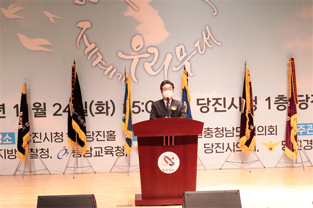 ¿À´Ã 24ÀÏ ¿ÀÈÄ ½Ãû 1Ãþ ´çÁø Ȧ¿¡¼­ Á¦51ȸ  ¹ÎÅë â¼³ 39Áֳ⠱â³ä ¹ÎÁ· ÅëÀÏ ÃæÃ»³²µµ´ëȸ°¡ ¿­·È´Ù. ¿À´Ã ±â³äȸÀÇ ½ÄÀü Çà»ç¿£ ³²ºÏÅëÀÏ ÄÚ¸®¾Æ °ø¿¬´ÜÀÌ ³ª¿Í ³ë·¡¿Í ¿¬ÁÖ¸¦ ¼±º¸¿´´Ù. ÀÌÈÄ ½Ã»ó½Ä°ú °¢°è ÀλçµéÀÇ È¯¿µ»ç¿Í °Ý·Á»ç ,°¨»çÆÐ Àü´Þ ±×¸®°í ½Ã»óÀ¸·Î ÁøÇàÀÌ µÇ¾ú´Ù.