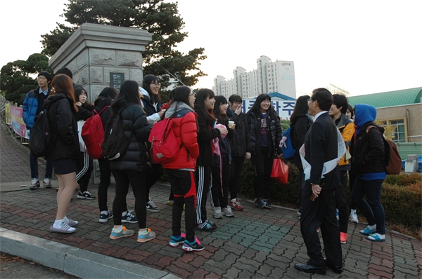 À̳¯ ¾ÆÄ§ ½Ò½ÒÇÑ ³¯¾¾¿¡µµ ´çÁø±³À°°¡Á·µéÀº ½ÃÇèÀå ÀÔ±¸¿¡¼ °Ý·ÁÀÇ ¹Ú¼ö·Î ½ÃÇèÀå¿¡ µé¾î°¡´Â ¼öÇè»ýµéÀ» ÀÀ¿øÇß´Ù.