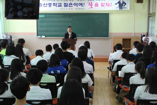 ¼Û»êÁßÇб³(±³Àå ¼Õ¹®¼ö)´Â 4ÀÏ ¿ÀÀü û¼Ò³â Áø·Î±³À° Ư°ÀÇ ÀÏȯÀ¸·Î ±èµ¿¿Ï ±¹È¸ÀÇ¿øÀ» ÃÊÃ»ÇØ ¡®±¹È¸ÀÇ¿øÀÌ µÇ±â±îÁöÀÇ Àλý°ú ºñÀü¡¯À̶ó´Â Àü±³»ý ´ë»ó Áø·Î±³À°Æ¯°À» ½Ç½ÃÇß´Ù.