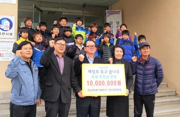 Çѱ¹µ¿¼­¹ßÀü(ÁÖ)¿¡¼­ Áö³­ 23ÀÏ ½ÅÆòÁßÇб³(1500¸¸¿ø)¿Í °è¼ºÃʱ³(1000¸¸¿ø)¿¡ À¯¼Ò³â Ã౸ Áö¿ø±Ý 2500¸¸¿øÀ» Àü´ÞÇߴµ¥, 2004³â 8¿ùºÎÅÍ À°¼º ÈÄ¿ø±ÝÀ» Áö¿øÇØ ¿À´Â »ç¾÷ÀÌ´Ù.