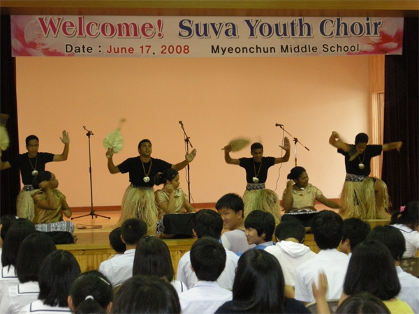 ¸éõÁßÇб³(±³Àå ±è ¼º»ï)¿¡¼´Â Áö³ 17ÀÏ ÇÇÁö ¼ö¹Ùû¼Ò³âÇÕâ´Ü(SUVA Youth Choir)ÀÌ ¹æ¹®ÇÏ¿© ¡®±Û·Î¹ú ½Ã´ë Çϳª µÊÀ» À§ÇÑ¡¯ ¹®ÈÇà»ç¸¦ °¡Á® Çлýµé°ú Áö¿ª»çȸ·ÎºÎÅÍ Å« È£ÀÀÀ» ¾ò¾ú´Ù.
