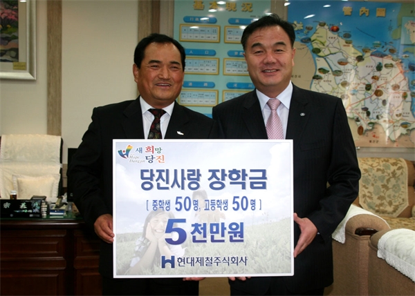 Çö´ëÁ¦Ã¶Àº 9ÀÏ ´çÁø±ºÃ»¿¡¼ ´çÁøÁö¿ª Áß°í»ý °¢ 50¸í¾¿ 100¸í¿¡°Ô 5õ¸¸¿øÀÇ ÀåÇбÝÀ» Àü´ÞÇß´Ù.