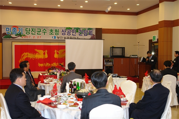 À̳¯ °£´ãȸ´Â ´çÁø»ó°øÈ¸ÀÇ¼Ò ÀÓ¿ø ¹× ȸ¿ø¾÷ü ´ëÇ¥, Áö¿ª »ó°ø´Üü ÀÓ¿ø µî 50¿©¸íÀÌ Âü¼®ÇÑ °¡¿îµ¥ °ü³» »ó°øÀεéÀÇ °æ¿µÈ°µ¿¿¡ µµ¿òÀ» ÁÖ°íÀÚ ´çÁø±º¿¡¼ ÆîÄ¡°í ÀÖ´Â ±½Á÷±½Á÷ÇÑ °æÁ¦Çö¾È»ç¾÷ ¹× ±â¾÷Áö¿øÁ¤Ã¥¿¡ ´ëÇÏ¿© °¿¬½Ä °æÁ¦Ç׸¸°úÀåÀ¸·ÎºÎÅÍ ¼³¸íÀ» µé¾ú´Ù.