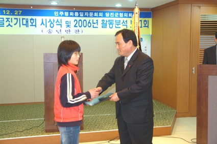¹ÎÁÖÆòÈÅëÀÏÀÚ¹®È¸ÀÇ ´çÁø±ºÇùÀÇȸ´Â Áö³ 27ÀÏ °¡¿ø¿¹½ÄÀå ¹éÁ¶È¦¿¡¼ ±ÛÁþ±â ´ëȸ ½Ã»ó ¹× 2006³â Ȱµ¿ºÐ¼® º¸°íȸ¸¦ °®°í 2006³âµµ Ȱµ¿À» ¸¶°¨Çß´Ù.