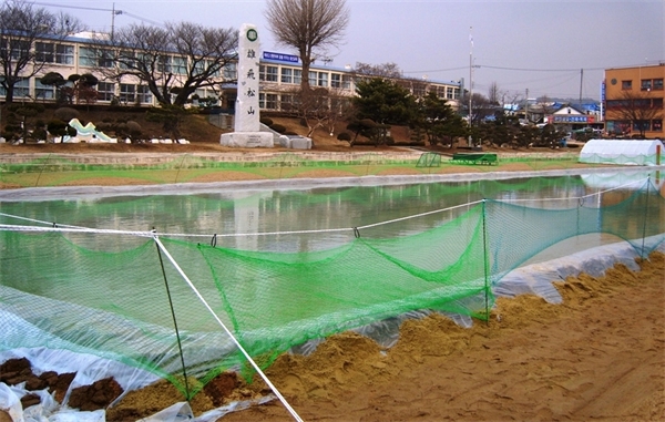 ƯÈ÷, À̹ø ½ä¸ÅÀå Á¶¼ºÀº ÃÑ 200¸¸¿øÀÇ »ç¾÷ºñ°¡ ÅõÀԵǾî Áö³ 23ÀϺÎÅÍ 3Àϰ£ ºñ´ÒÁ¦Á¶¾÷ü¿¡ Á¦ÀÛ ÀÇ·ÚÇÑ ´ëÇüºñ´Ò(0.07mm)À» ¿îµ¿Àå ¹Ù´Ú¿¡ ±ò°í ºñ´Ò³¡¿¡ ¾à 50cm ÀÌ»óÀÇ ³ôÀº ¶ÒÀ» ½×°í ¹° ¾à 180,000§¤¸¦ ³Ö¾î ¸¸µé¾úÀ¸¸ç, 29ÀÏ °³ÀåÇÏ¿© °³ÇÐ Àü±îÁö ¿î¿µÇÒ °èȹÀÌ´Ù.