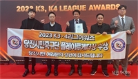 ´çÁø½Ã¹ÎÃ౸´Ü(±¸´ÜÁÖ ¿À¼ºÈ¯ ½ÃÀå)ÀÌ 7ÀÏ ´ëÇÑÃ౸Çùȸ ÁÖ°üÀ¸·Î ¿¸° 2023 K3¡¤K4¸®±× ¾î¿öÁî¿¡¼ ¡®Ç÷¹ÀÌÅõ°Ô´õ»ó¡¯À» ¼ö»óÇß´Ù.Ç÷¹ÀÌÅõ°Ô´õ»óÀº ½ÃÁ𠵿...