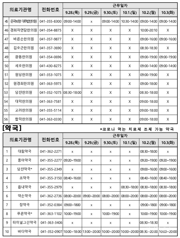 ¶ÇÇÑ, ¿¬ÈÞ ±â°£ Áß 4ÀÏ(9.28.~10.1.)°£ ¿ÀÀü 9½ÃºÎÅÍ ¿ÀÈÄ 6½Ã±îÁö Áø·á½ÇÀ» ¿î¿µÇÑ´Ù.